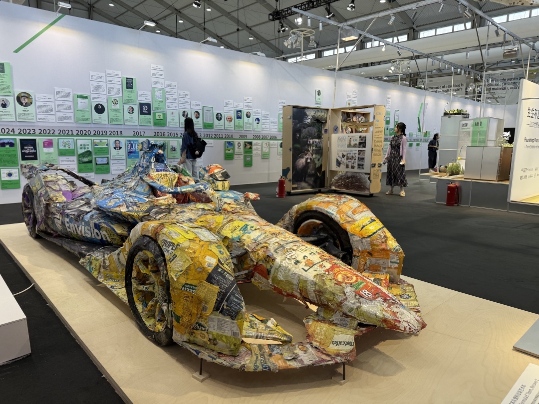 值得一提的是,大会还专门策划了生态设计主题展区。主题展区以学术和文献的方式演绎大会主题,从线性消耗到循环共生,从空间占据到生态嵌套,从技术应用到系统修复,展现资源循环与闭环设计如何重塑生产-消费系统、城乡与自然作为生命共同体的融合路径、以及科技与设计协同修复生态的潜力。