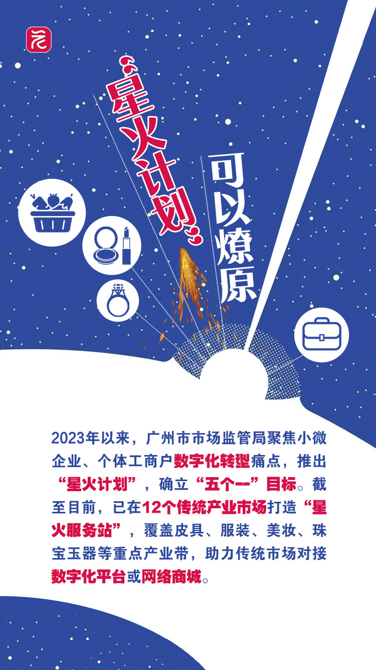 别怕,广州市通过推出“星火计划”、打造“星火服务站”送来发展东风,以“政府搭台、平台赋能、市场联动”为核心理念,打出涵盖流量倾斜、成本减免、运营培训、品牌孵化、人才培养等关键环节的“政策帮扶组合拳”,为个体工商户的数字化转型之路扫清障碍、注入动能。