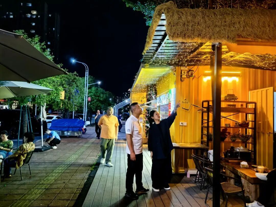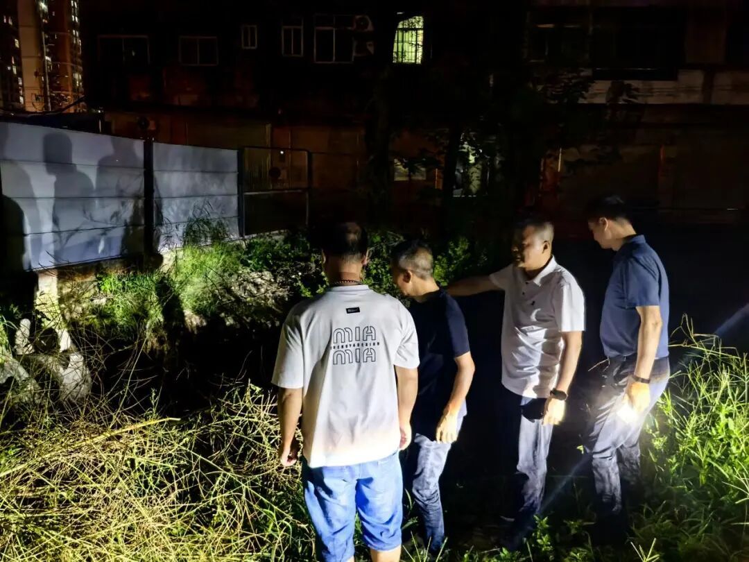做好人员安置的同时,花城街同步开展多领域安全隐患排查整改,筑牢台风防御的“铜墙铁壁”。在长岗村、罗仙村河道沿线,巡查人员重点监测河道水位变化,检查排水设施运行状态,发现长岗排洪河存在杂物淤积影响排水的问题后,立即向长岗村委沟通整改。村委迅速组织人力物力清理河道,确保行洪畅通,同时安排专人24小时值守,密切关注水位与堤坝安全,做到“险情早发现、早处置”。此外,在石岗喜市,工作人员逐一排查商铺门窗加固情况、户外广告牌固定状态及店内外易倒物品收纳情况,从源头杜绝高空坠物、门窗损坏等安全风险。