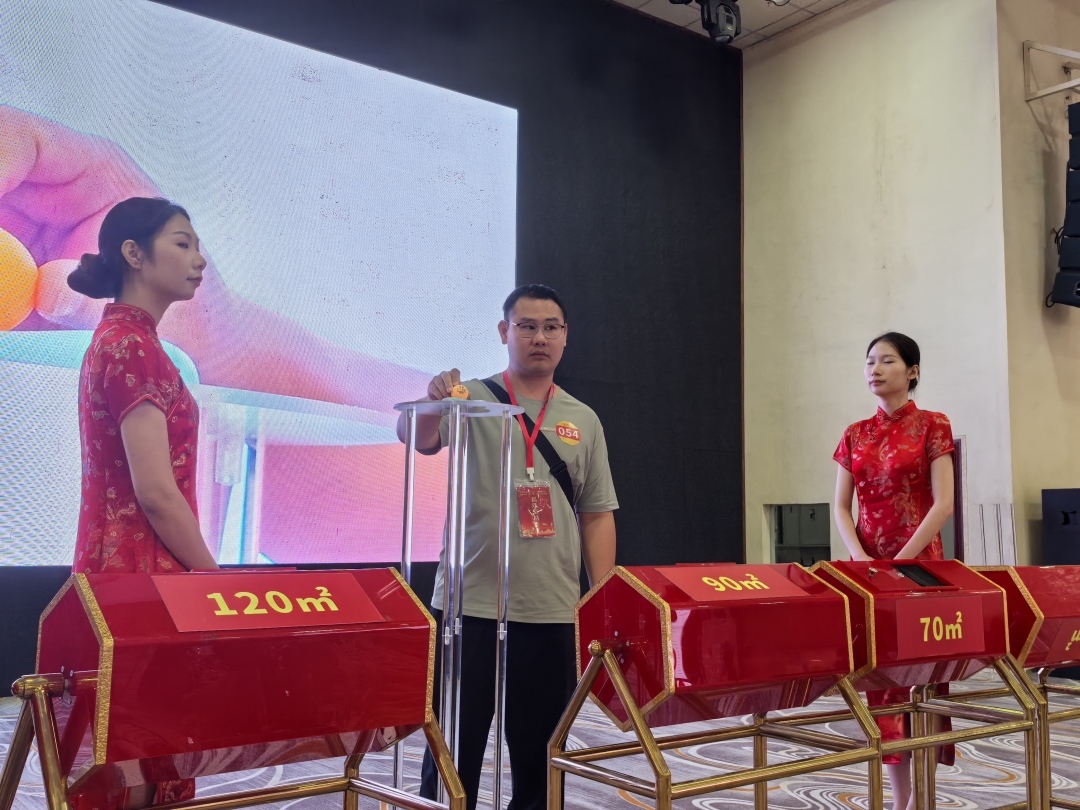 9月25日下午,美东会展中心内人头攒动。签约村民携带身份证、《摇珠资格证》等材料,参与摇珠活动。现场设有不同户型的电子销控屏,广州市花都公证处全程监督公证,广州金鹏律师事务所全程见证,区融媒体中心工作人员全程拍摄记录取证,确保“一房一珠”透明公正分配。