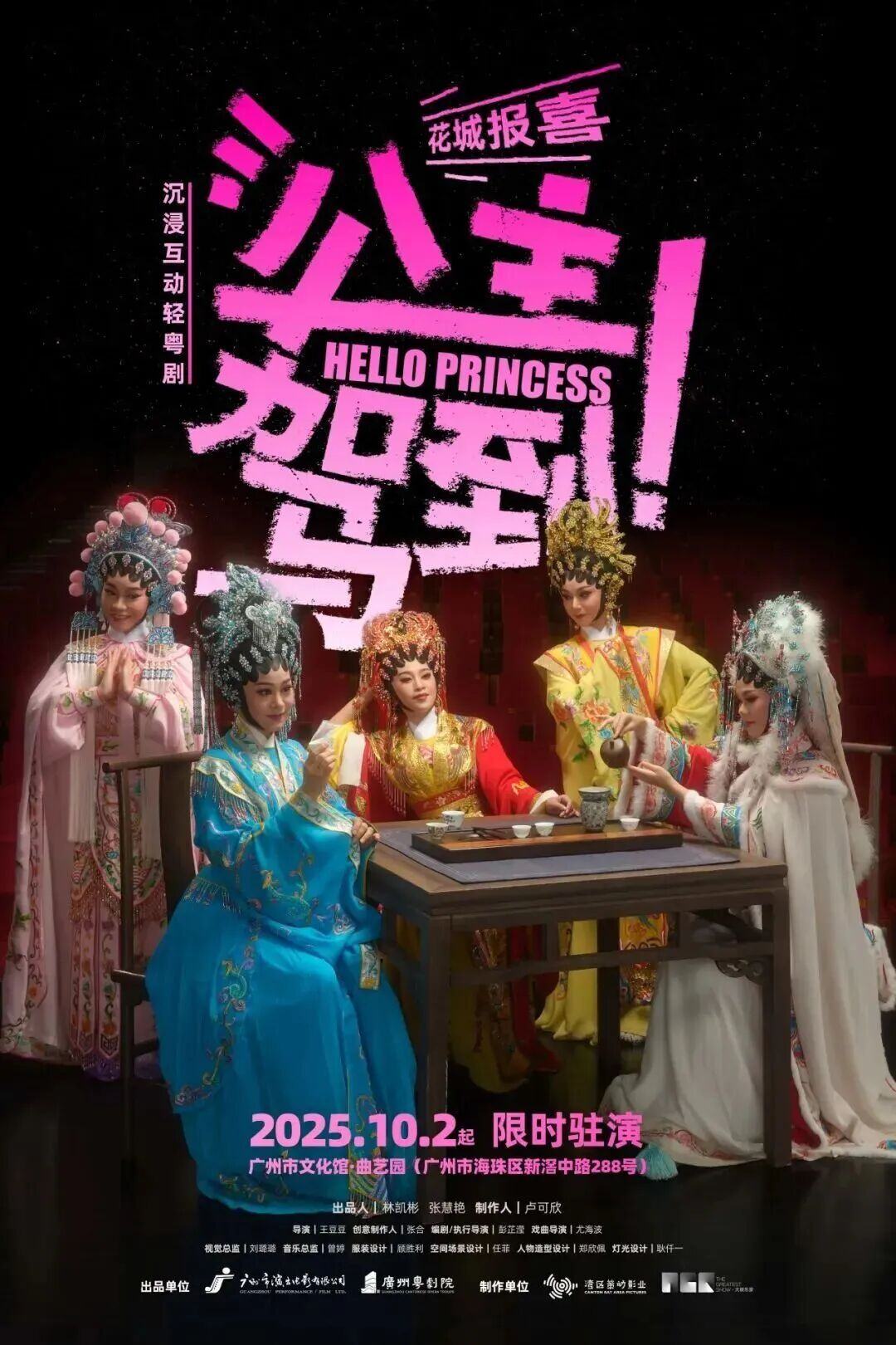 10月2日至10月8日,由广州市演出电影公司、广州粤剧院联合出品的沉浸式互动轻粤剧 《公主驾到!》 将于曲艺园每日上演两场,该剧巧妙融合凤霞公主的妙趣姻缘与多位经典公主群像,为传统戏曲注入现代观演活力。