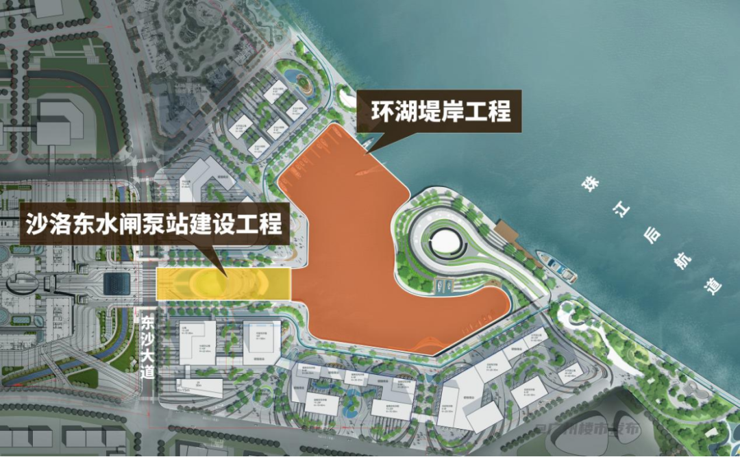 沙洛东水闸泵站建设工程,则位于沙洛涌与新建水域之间,将新建沙洛东水闸、泵站各一座,主要用于水位调节与防洪减灾。