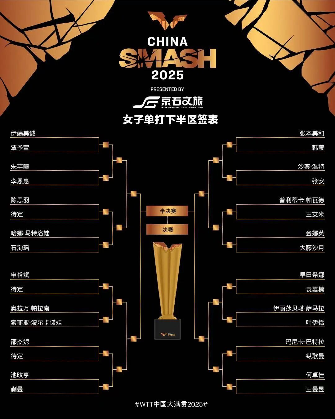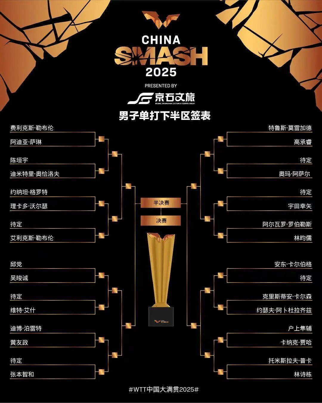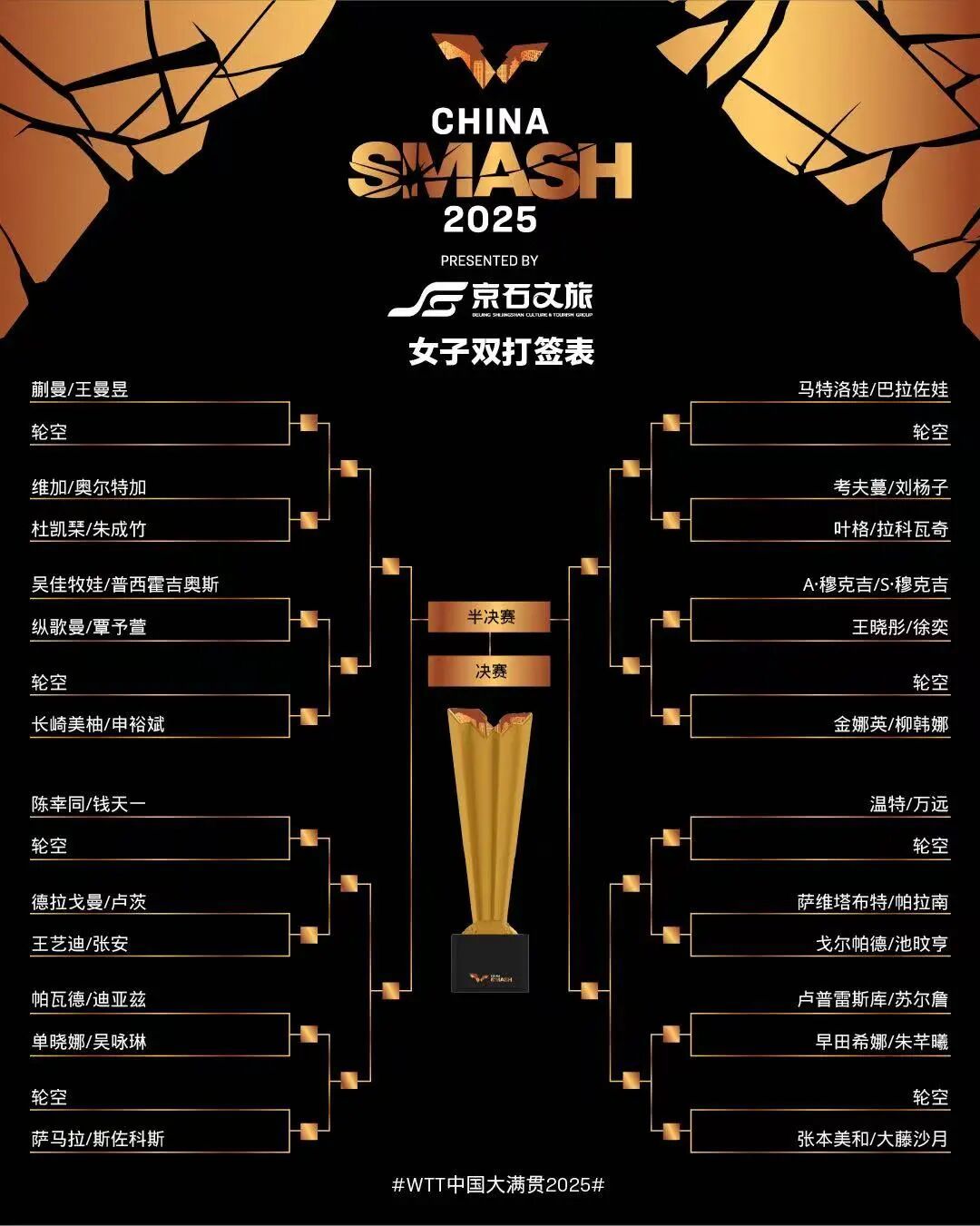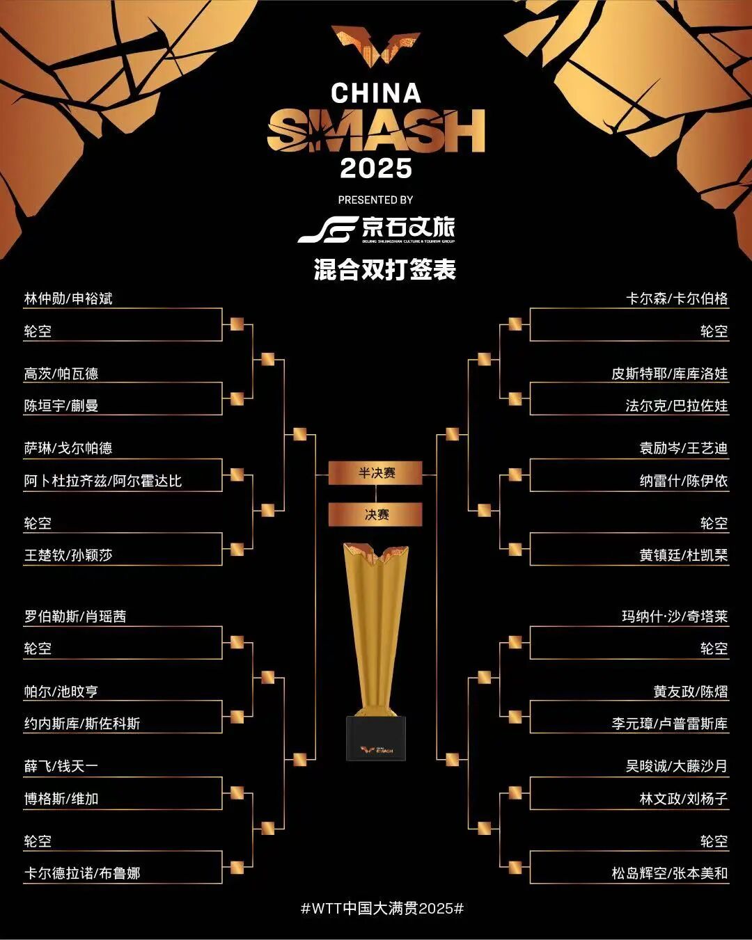 2025年WTT中国大满贯于9月25日至10月5日在北京举行,五个单项的正赛抽签仪式昨天在北京石景山区的法海寺举行,中国队的王楚钦、孙颖莎以及巴西队的卡尔德拉诺、波多黎各队的迪亚兹作为运动员代表为男单和女单项目进行抽签。