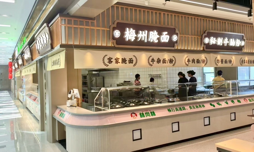 服务区内“林尚林”餐厅也以一众客潮美食助力打造“舌尖上的服务区”。东区餐厅提供了36种客潮特色美食,有客家糍粑、梅州腌面、仙人粄、梅菜肉饼、客家酿板等传统小吃,绝对能照顾到归家游子们的“家乡胃”。西区的小吃档同样丰富,潮汕牛肉丸、牛杂、粿条等地道美味让旅客一站吃遍潮汕风味。中秋期间,还特别推出潮汕朥饼,金黄酥脆,甜而不腻,寓意团圆美满。