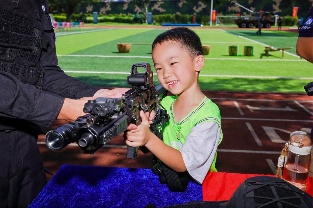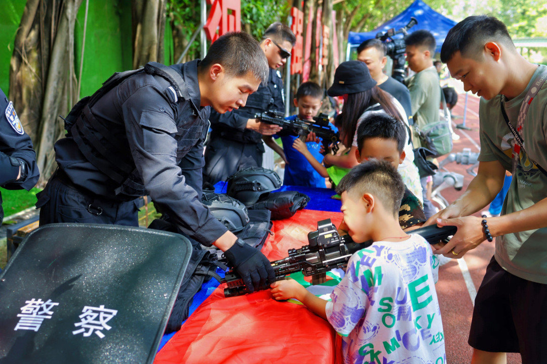 这里“虚实相生”:特种装甲车、防弹头盔、防弹衣、防弹盾牌、破拆装备等特种装备,让市民亲身感受守护城市安全的“硬核”力量;模拟射击、兵棋推演项目,让参与者在游戏中学习军事知识;无人机激光射击与无人机搬运体验,展现科技在国防领域的应用,大家踊跃参与,现场欢声笑语不断。