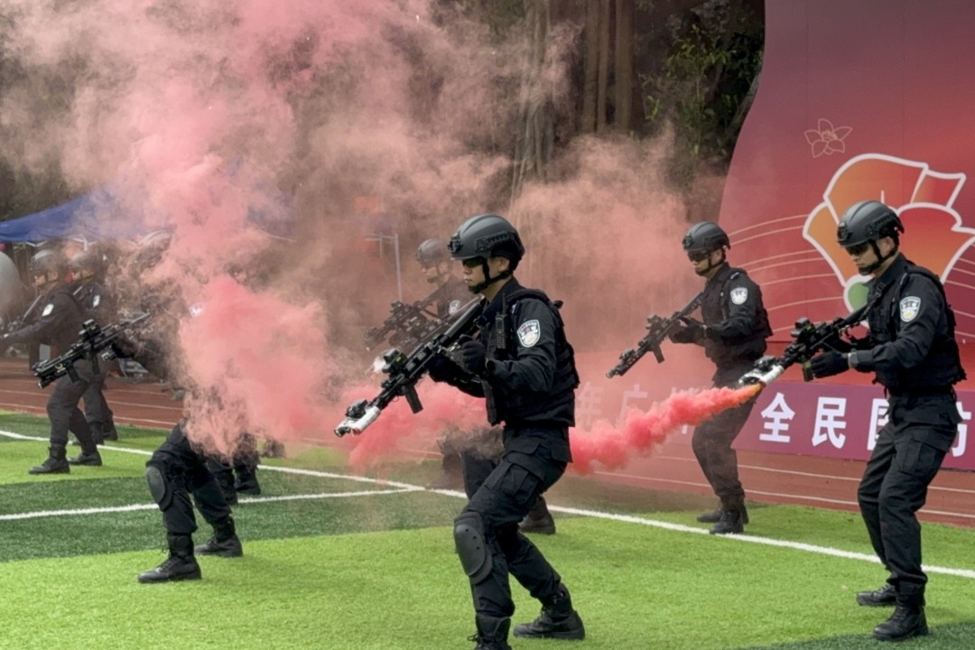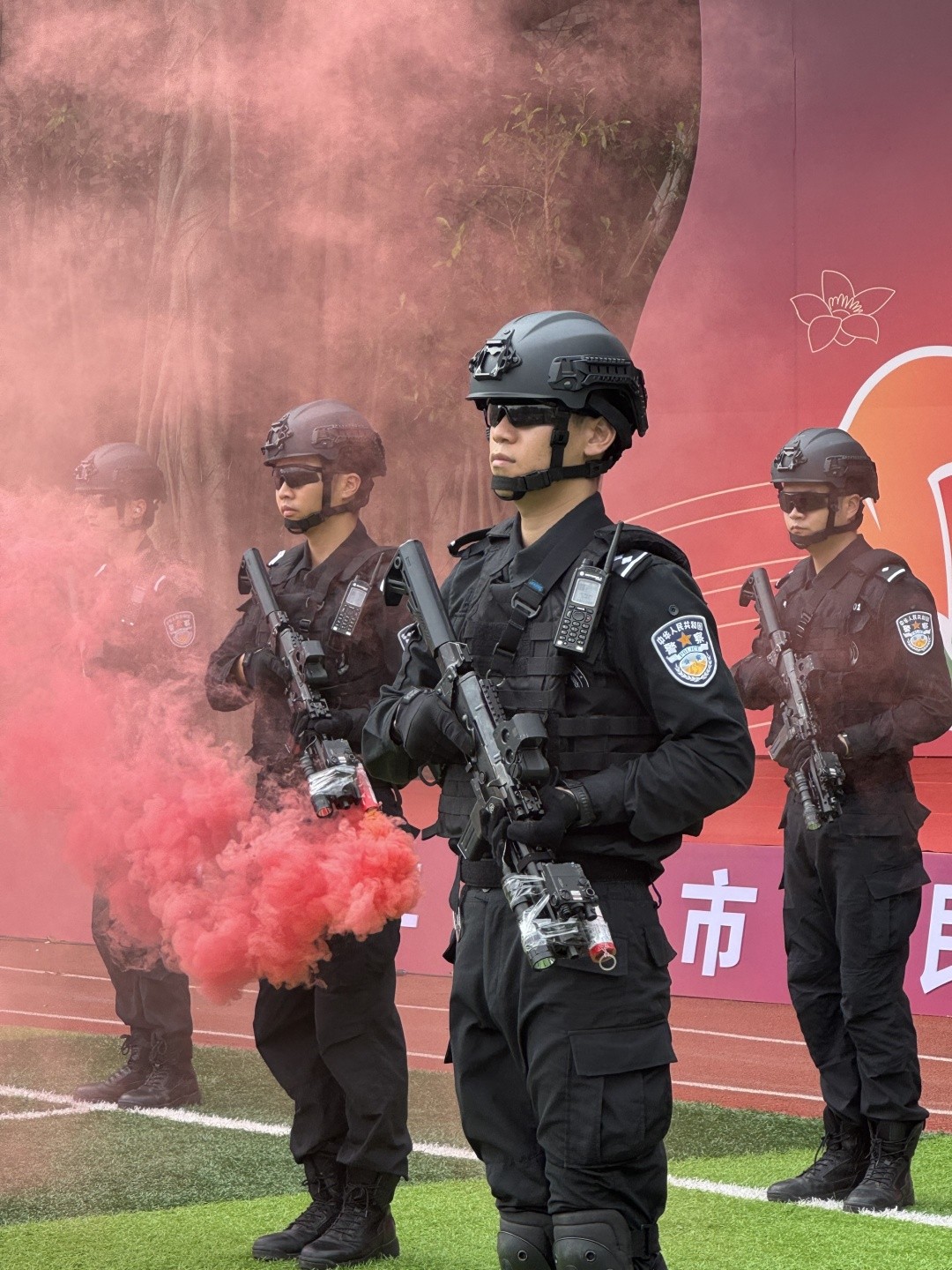 “这就是安全感!”现场,广州市公安局特警支队《特警战术枪操展示》震撼全场,战术手语无声却有力,多种射击姿势迅捷精准,小组突击配合默契如一震撼全场,展现守护城市安全的硬核实力。他们以逆行之姿,守护你我安全,那永不退缩的是刻进骨血的忠诚力量。