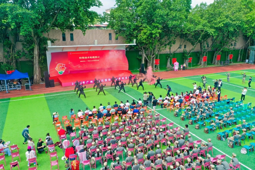 9月27日上午,广州市国防教育中心广场上,国歌激昂,国旗高扬,一场以“弘扬抗战精神 共筑国防长城”为主题的全民国防教育活动精彩上演。活动通过“沉浸式展演+互动式潮墟”模式,将抗战精神传承、强军兴军成果、科技创新力量与青春活力深度融合,为广大市民呈现了一堂“直抵人心”的全民国防教育公开课。这也是2025年广州全民国防教育月系列活动的重要一环。