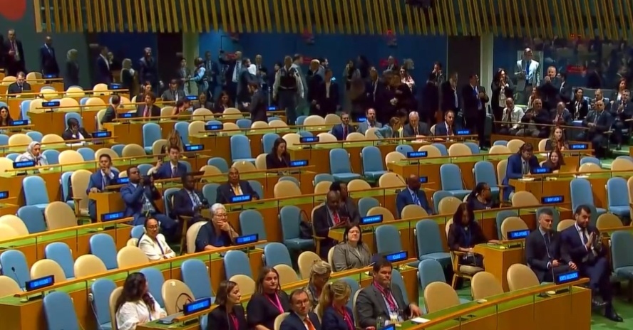 △众多联合国会员国代表起身离席,代表席顿时空空荡荡