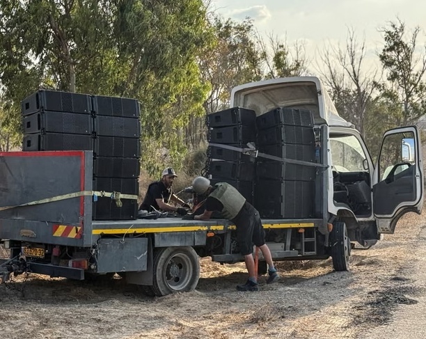 △9月26日,在加沙边境附近,可以看到安装在卡车上的扬声器