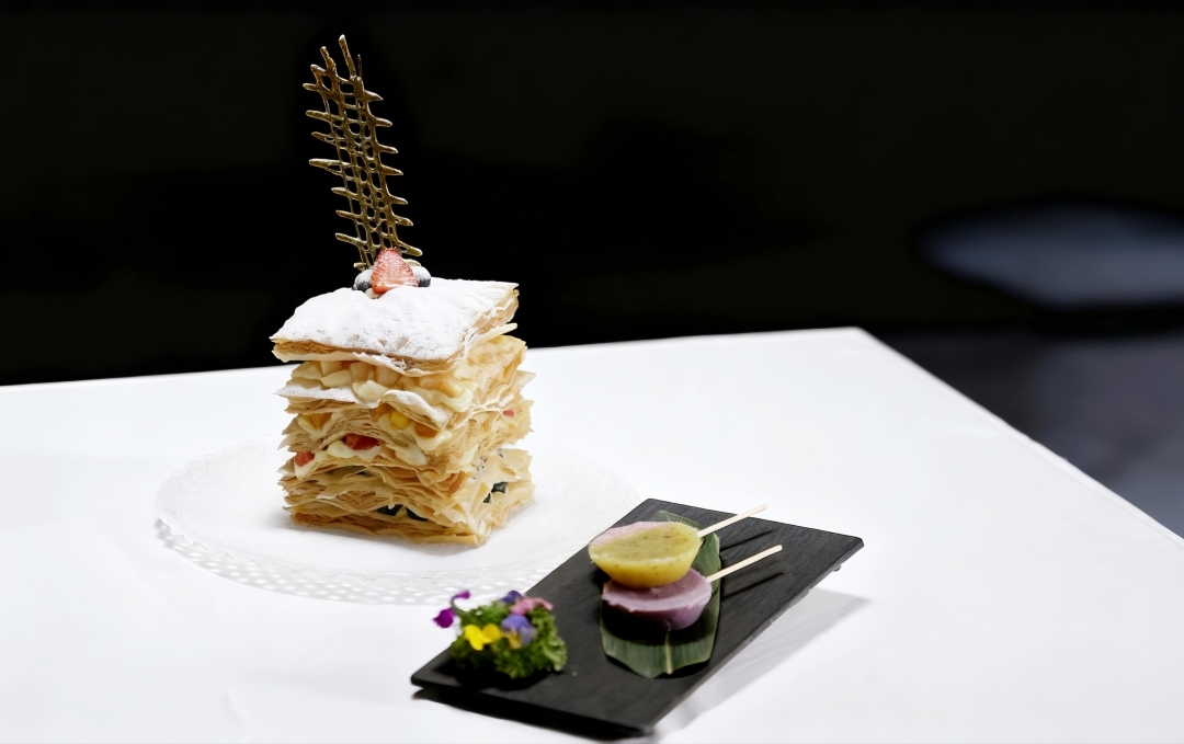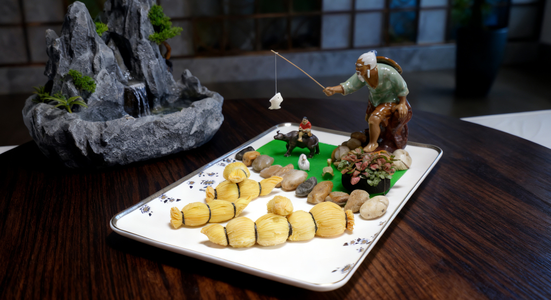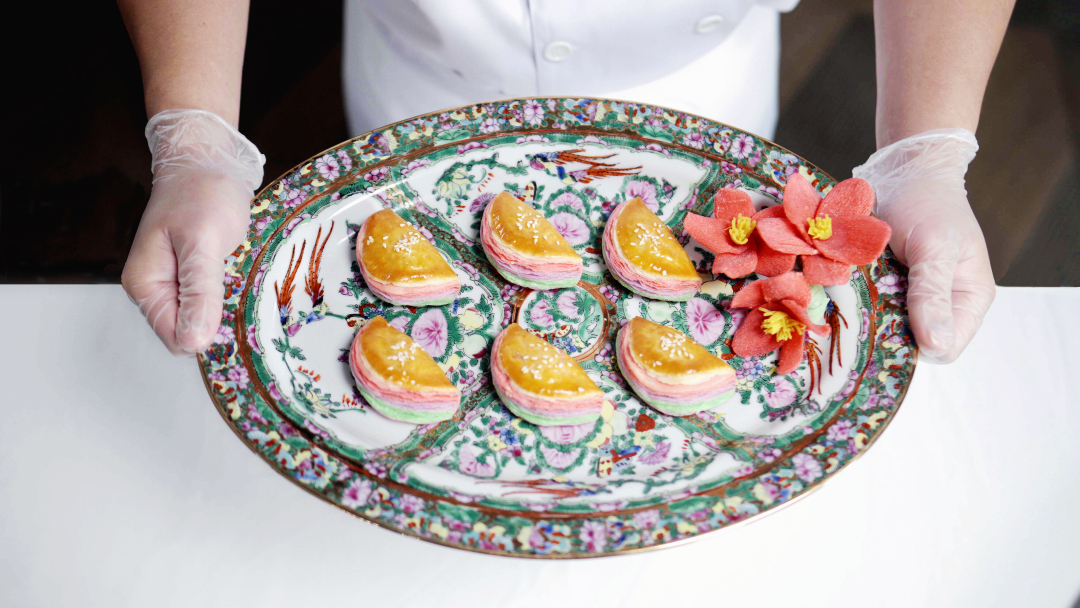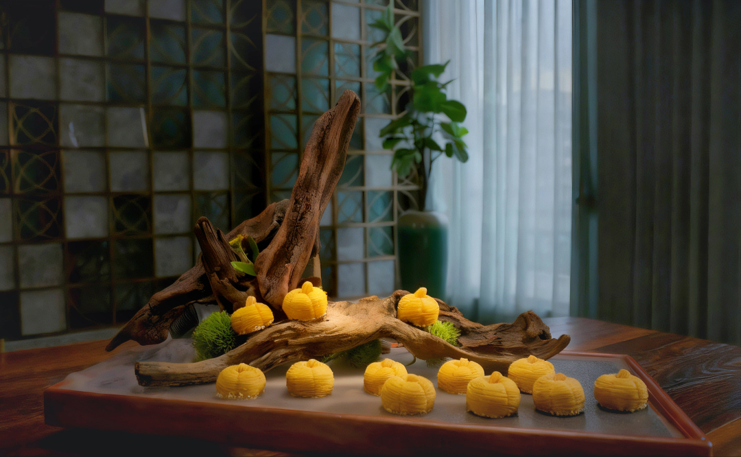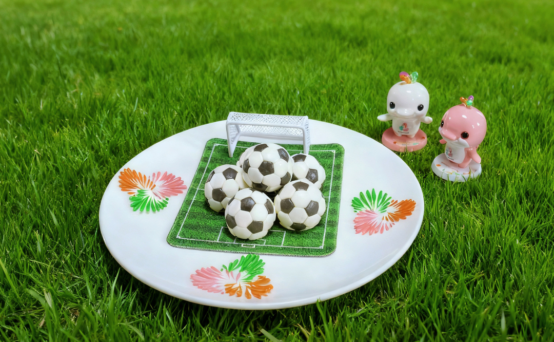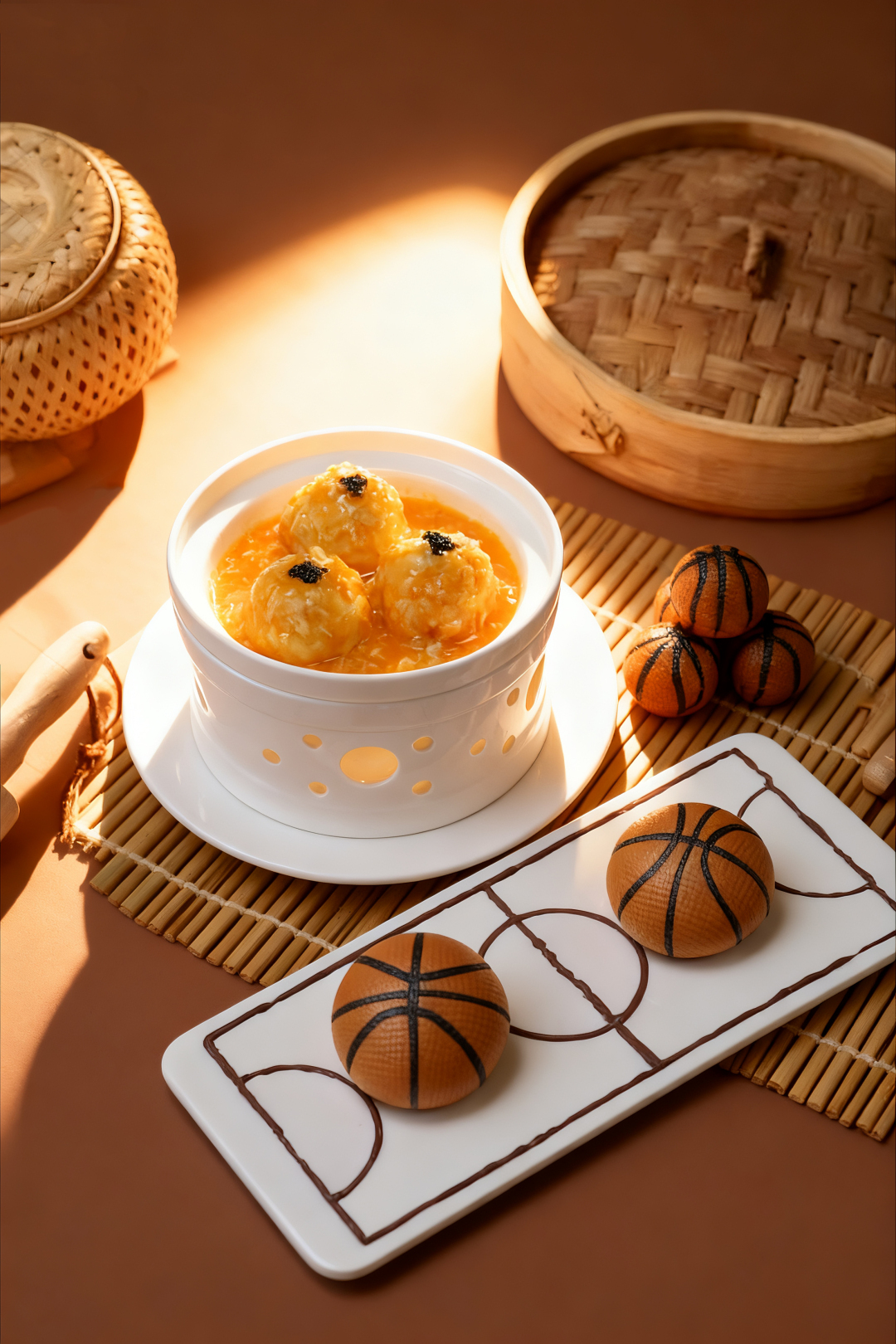 陶陶居的三味金牌酥拼冠军大虾饺,饺皮融入广州全运会会徽的三种颜色,新鲜小龙虾遇上藤椒冲击出全新的鲜味。两款星点,双辉交映,一酥一蒸、一甜一鲜,体现体育竞赛的创新精神、展现食在广州之魅力;来自澳门的东国餐厅带来“蛋黄莲蓉足球”,从 “形” 到 “味” 都力求 “精准还原”,蒸制后球面饱满立体;内陷选用广式早点的“黄金组合”——咸蛋黄与莲蓉,一口解锁赛事氛围!为全运会喝彩!