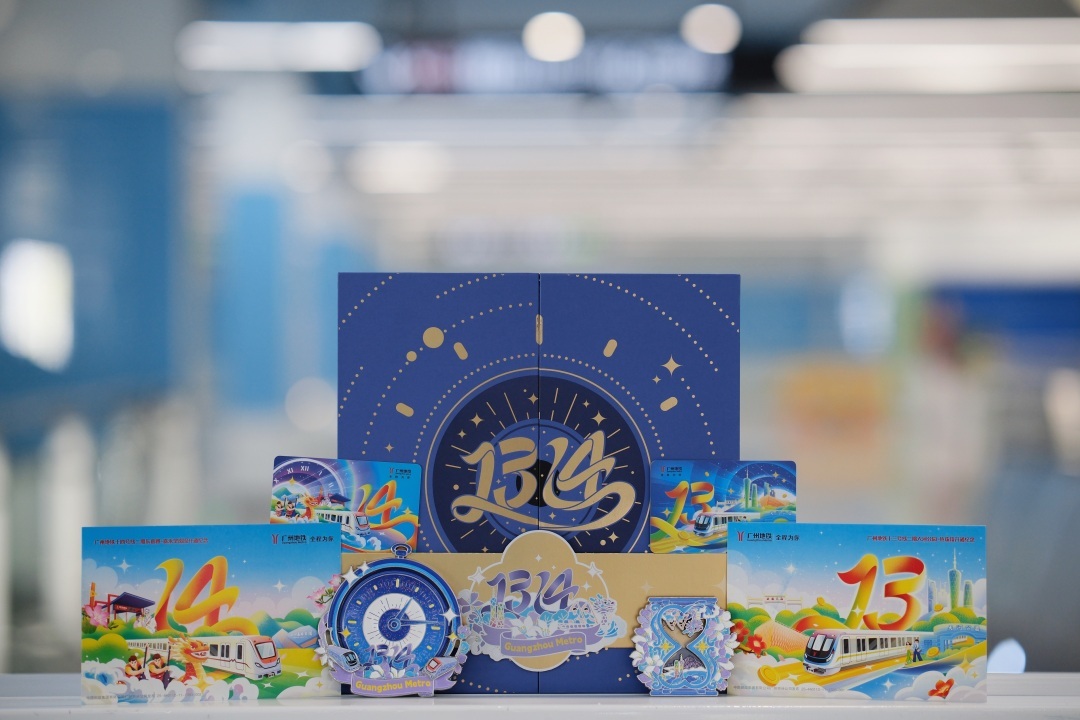 “1314”开通新线纪念票套装,将与新线开通同步发售。套装分为标准版和PLUS版,标准版售价100元/套,包含1本票册、2张地铁一日票和2张主题明信片,限量发行800套;PLUS版售价198元/套,在标准版的基础上额外配备了1组双层定制冰箱贴及1个珍藏礼盒,限量发行1200套。纪念票整体设计围绕“1314”这串浪漫的数字展开,两张日票票面上各以彩色飘带勾勒出“13”“14”的主体数字,既代表十三、十四号线“双线齐发、浪漫启程”,又寓意广州地铁对广大市民“一生一世”的陪伴承诺。PLUS版本特别设计一组双层冰箱贴,采用模块化设计,双层结构既可独立展示,也可叠加组合,灵活多变。上层为沙漏,每一次翻转,都代表传统与现代的共鸣;下层为时钟,时针分针定格于“13时14分”,喻示“一生一世·与城同行”的浪漫。