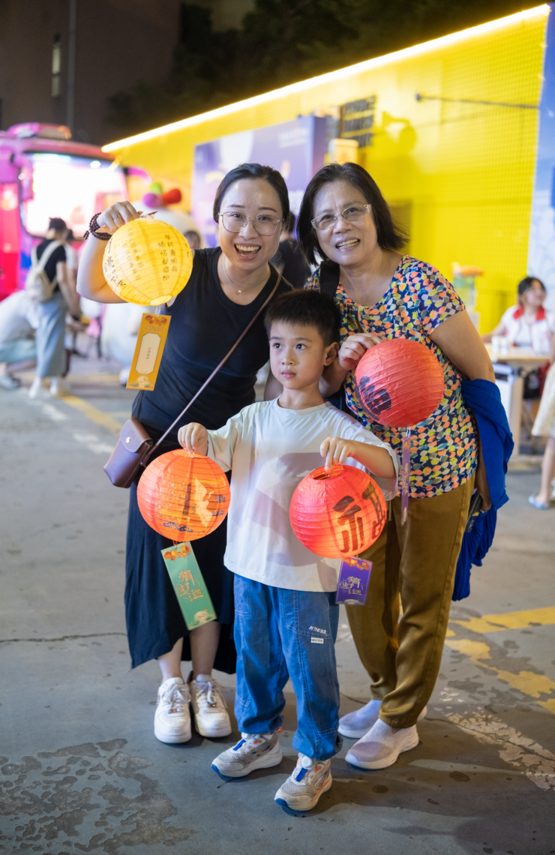 在舞台之外,灯谜长廊成为不少居民的驻足之地。一张张写满诗意的谜题用灯笼高高悬挂,市民街坊三三两两结伴竞猜,既有传统文化的韵味,也充满互动的乐趣。居民张先生笑着说,“一家人一起猜灯谜,还能赢取小礼物,真的很有节日氛围。”