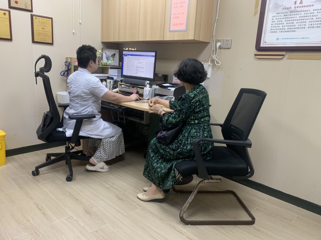 海珠区瑞宝街社区卫生中心全科医生李晶在接诊签约居民
