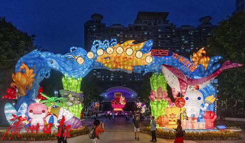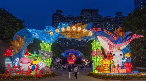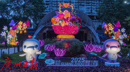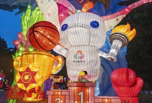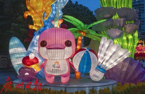 灯会展出广州首个以彩灯形式呈现的全运会吉祥物,造型可爱趣致,营造出“十五运”热烈喜庆氛围。