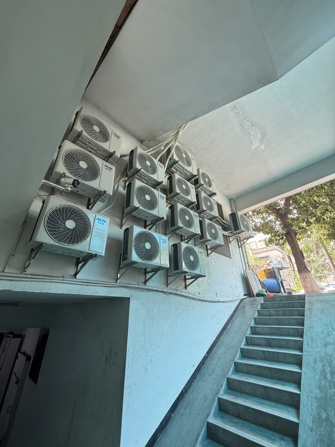 楼道也挂满了空调外机