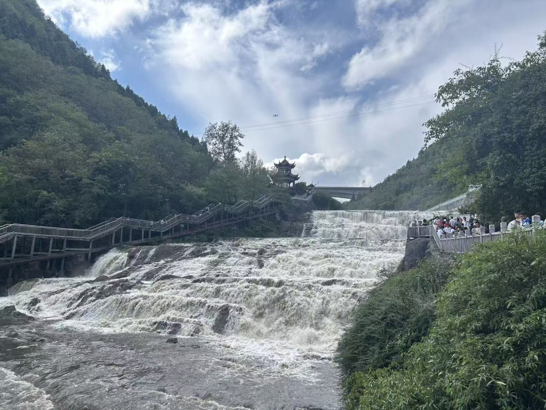 瀑布两侧,纱帽山与文笔山左右对峙,绿意葱茏,仿佛一道天然屏风,与奔流的瀑布共同勾勒出一幅动静相宜的山水长卷。据了解,为守护这片城市绿肺,毕节市于2025年7月启动河道清理专项行动,持续优化瀑布周边生态环境,确保水质稳定达到Ⅱ类标准,让这一“城中仙境”永葆清澈与生机。