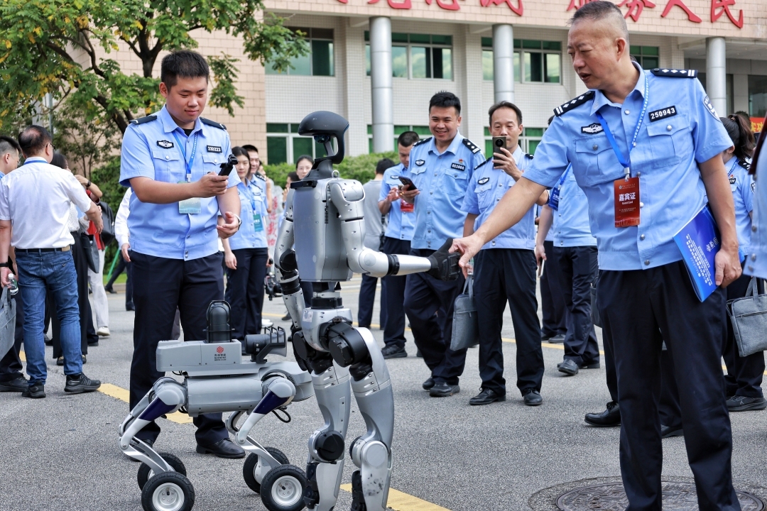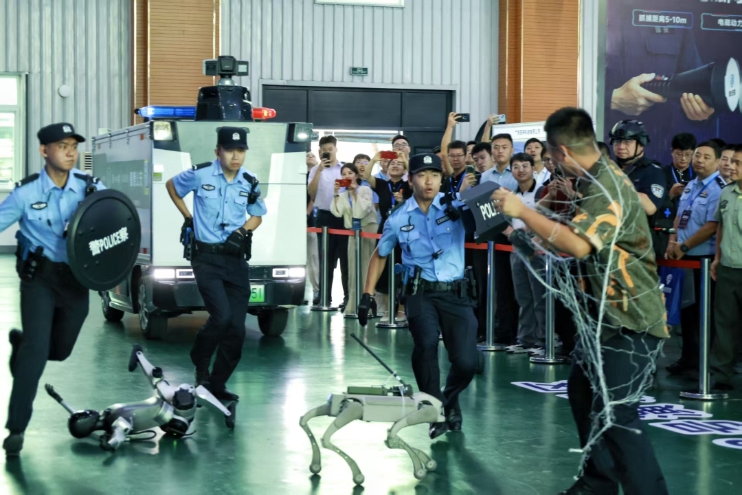 展会现场,警用机器狗、无人排爆车、人形机器人、无人机防控等智慧化装备纷纷亮相。展品涵盖了人工智能、警用非致命性武器、安全防护器材、无人机反制设备、应急救援、安检排爆侦查取证设备及特种车辆等一批专、精、特、新的公共安全技术和警用技术装备,展现了守护平安的科技力量。警、校、企之间进行了面对面深入交流,促进了公安机关、公安院校和装备企业在“教学研练战”方面的深入互通。