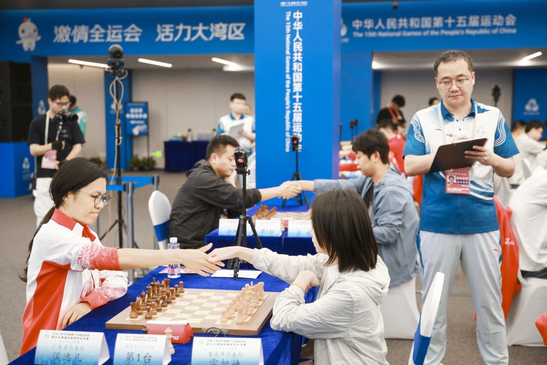 第十五届全运会群众比赛国际象棋项目在深圳市罗湖区结束决赛阶段的较量,经过激烈争夺,黑龙江队的王皓通过加赛战胜四川队的许翔宇,夺得男子个人公开组冠军;广东队选手侯逸凡战胜重庆队的雷挺婕蝉联女子个人公开组冠军。此外,江苏队夺得六个组别中的三个冠军,成为本届全运会的最大赢家。
