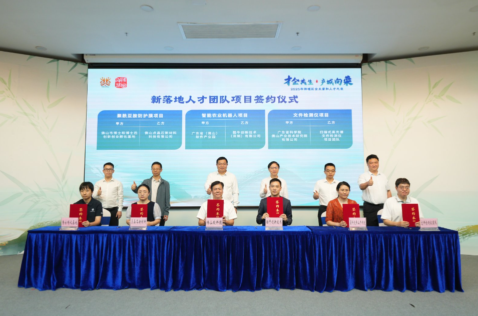 在新落地人才(团队)项目签约环节,佛山点晶石新材料科技有限公司、酷牛创新技术(深圳)有限公司、扫描式高光谱文件检测仪项目分别与佛山博士博士后创新创业孵化基地、广东省(佛山)软件产业园、广东省科学院佛山产业技术研究院有限公司完成签约。这批项目的落地,预示着禅城在新材料、人工智能、高端检测装备等前沿领域实现新的突破,为区域产业升级注入崭新动能。