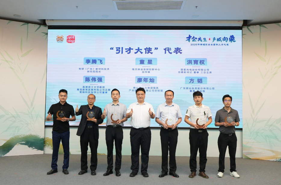 在授牌环节,仪式向海天味业全球创新中心总经理童星等6人授予“引才大使”牌匾,期盼他们作为禅城招才引智的“城市合伙人”,持续发挥“以才引才、以才荐才、以才聚才”的桥梁与纽带作用,不断为“佛山之心”汇聚源源不断的智慧活水与发展动能。