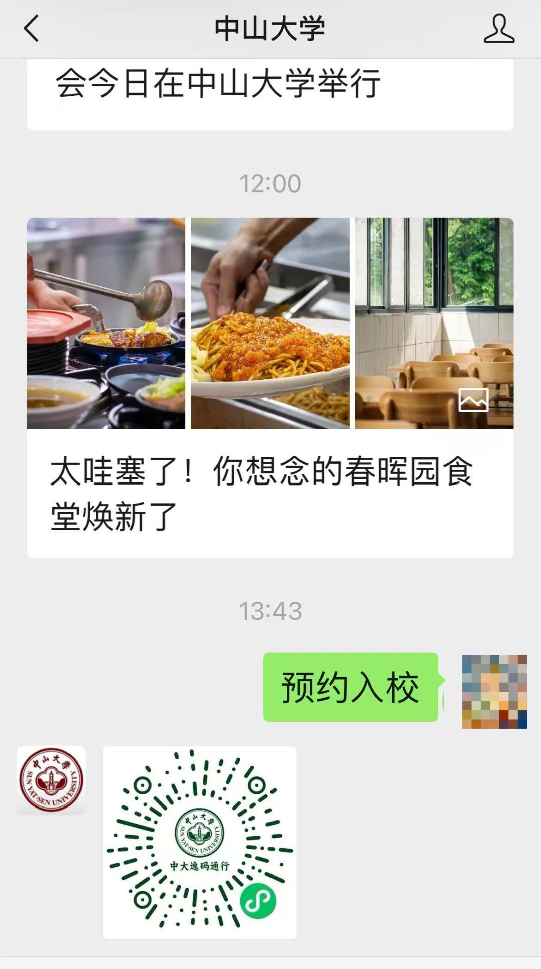 中山大学实行网上实名预约,个人参观可提前7日通过“中大逸码通行”微信小程序自主预约。公众可关注中山大学官方微信公众号,在“预约入校”菜单栏进入“中大逸码通行”微信小程序预约。或者,也可以在中山大学微信公众号后台输入“预约入校”。