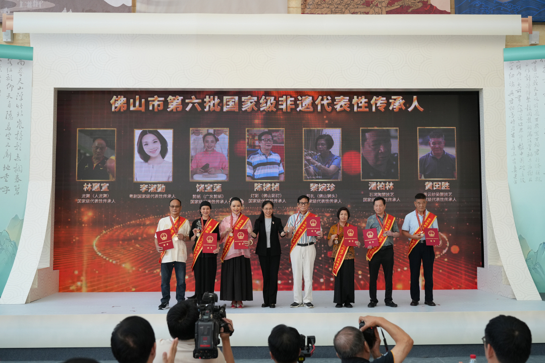 仪式最具象征意义的环节莫过于“注水启幕”。灵感取自佛山“三江汇流”的地理特征,与会领导将象征西、北、绥三江的清泉注入启动装置,寓意珠江文明在此交融传承,并为佛山注入新的文化活力与时代动能。这一充满哲思的设计,精准诠释了博物馆作为文明承载者与传播者的角色。当日,同步举行的第六批国家级非遗代表性传承人颁证仪式,为盛典增添了厚重的文化分量。