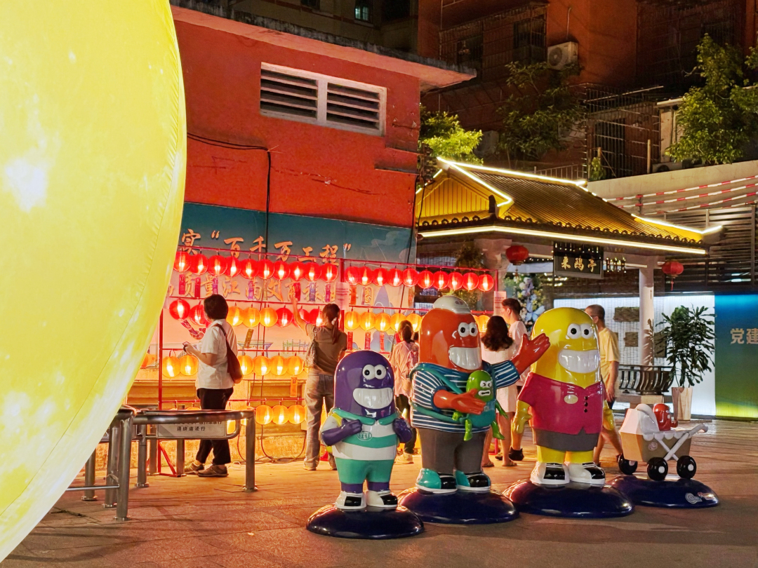 为让街坊“满载而归”,游园会设置的有奖娱乐环节备受青睐。集章换礼处,街坊们手持集满章的卡片,兑换中秋限定江南西IP冰箱贴。小游戏、猜灯谜、互动抽奖区前,队伍排起长龙,大人小孩齐参与,玩得不亦乐乎。