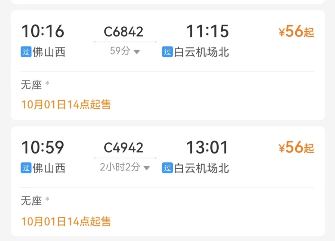 9月29日,记者通过12306查询发现,广州东环城际(番禺-白云机场北)开通后,佛山西站至白云机场北站,最快仅需59分钟。对比目前通过地铁、机场巴士、私家车等出行方式,这个行程时间刷新了佛山通达广州白云机场的最快记录。可见,珠三角城际铁路“筑线成网”后,对于佛山而言影响同样较大,而且让广佛“地铁+城际”出行新模式更加完善和高效。