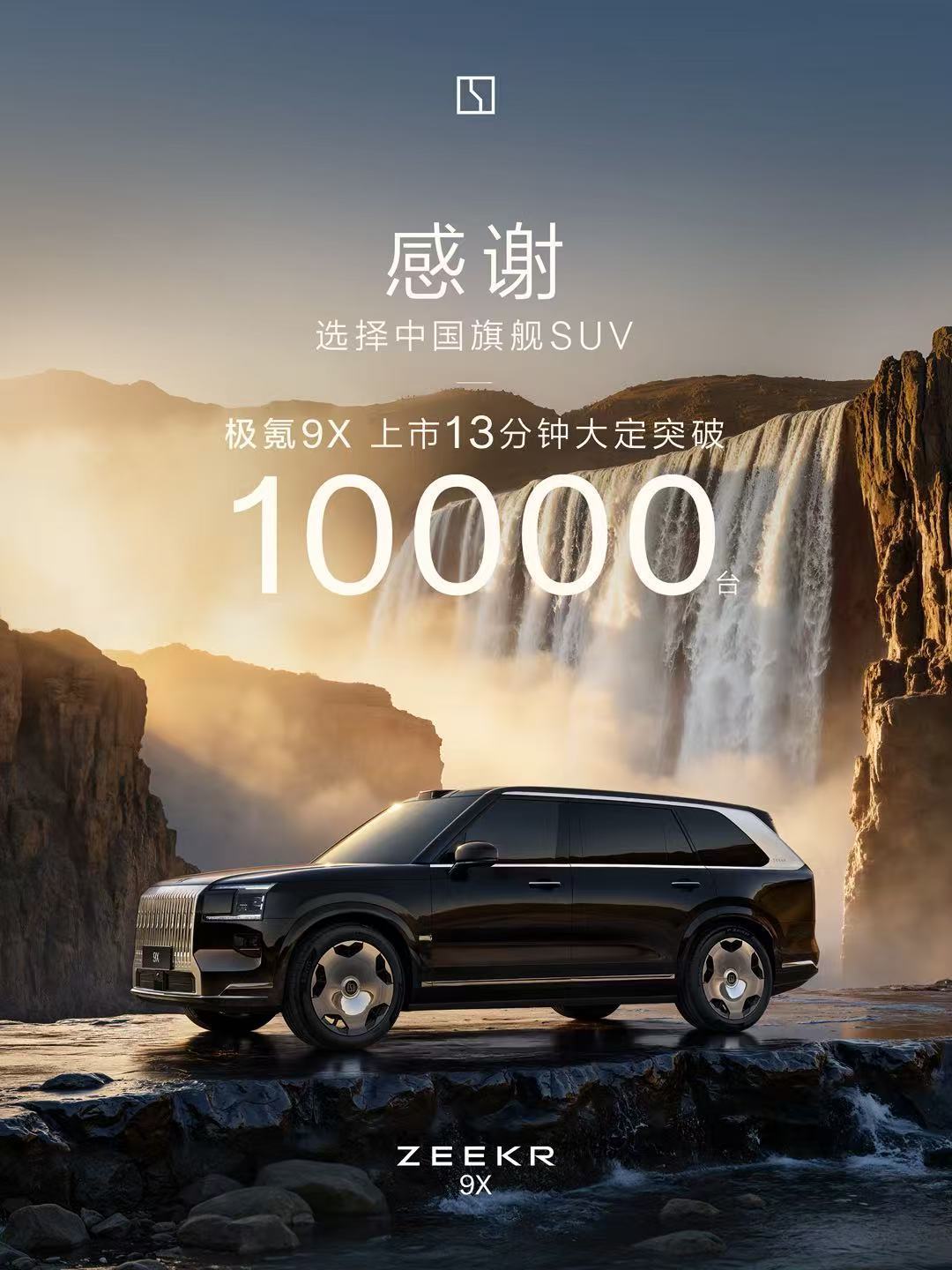 9月29日晚,中国新一代豪华旗舰极氪9X正式上市。品牌公布的数据显示,该车13分钟“大定”量破万台,为中国自主品牌进军全球高端豪华市场注入强劲信心。