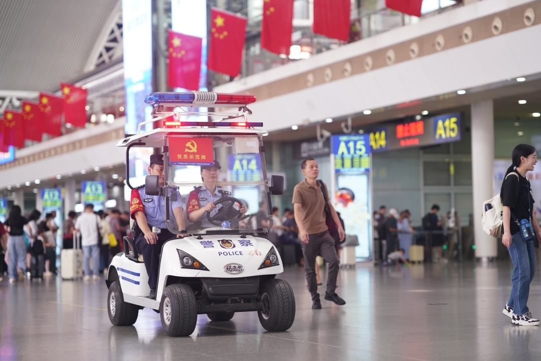 为提升旅客出行安全感,广州铁路公安处坚持警力前置、显性用警、巡逻卡口等方式强化治安管控,采取“人巡+车巡+视频巡”相结合的方式,提升见警率、管事率,同时督促铁路部门加大安检查危力度,严防各类危险物品进站上车。针对假期604列夜间加开列车,广州南站派出所增派夜间巡逻警力对东、西广场等重点区域开展不间断巡逻,并设置便民服务点,为夜间到站旅客提供服务保障。