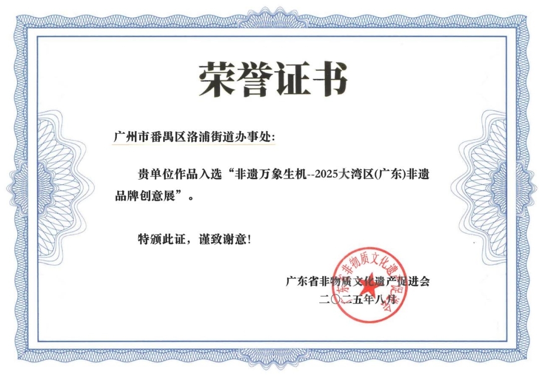 近日,广州市番禺区洛浦街上漖龙舟制作技艺模型作品在2025大湾区(广东)非遗品牌创意展上荣获广东省非物质文化遗产促进会颁发的荣誉证书,成为洛浦街推进文化赋能“百千万工程”的标志性成果。这一成就展现了传统龙舟技艺在当代的生命力,体现了本土文化传承与创新的扎实成效。