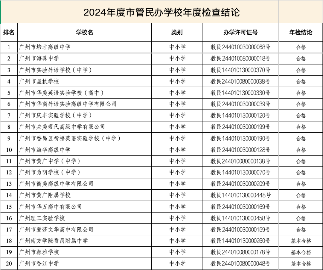 9月29日,广州市教育局在其网站发布关于2024年度市管民办学校年度检查结论公示的通告。