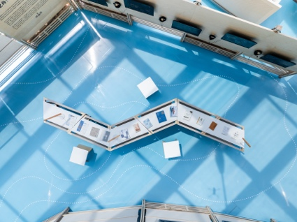 《海丝回响·泛舟记》正是以此为背景,邀请公众重新认识这座城市的海洋底色。展览设计抽象提取古帆船意象,通过星罗棋布的桅杆与帆布,营造出“千帆叠镜”的繁盛景象,U型展陈空间犹如一艘承载文明与时间的“文化方舟”,包罗百余件历史影像、船舶模型、民族志影像、古籍文献与当代艺术作品,立体呈现舟船作为文明载体的文化纵深。