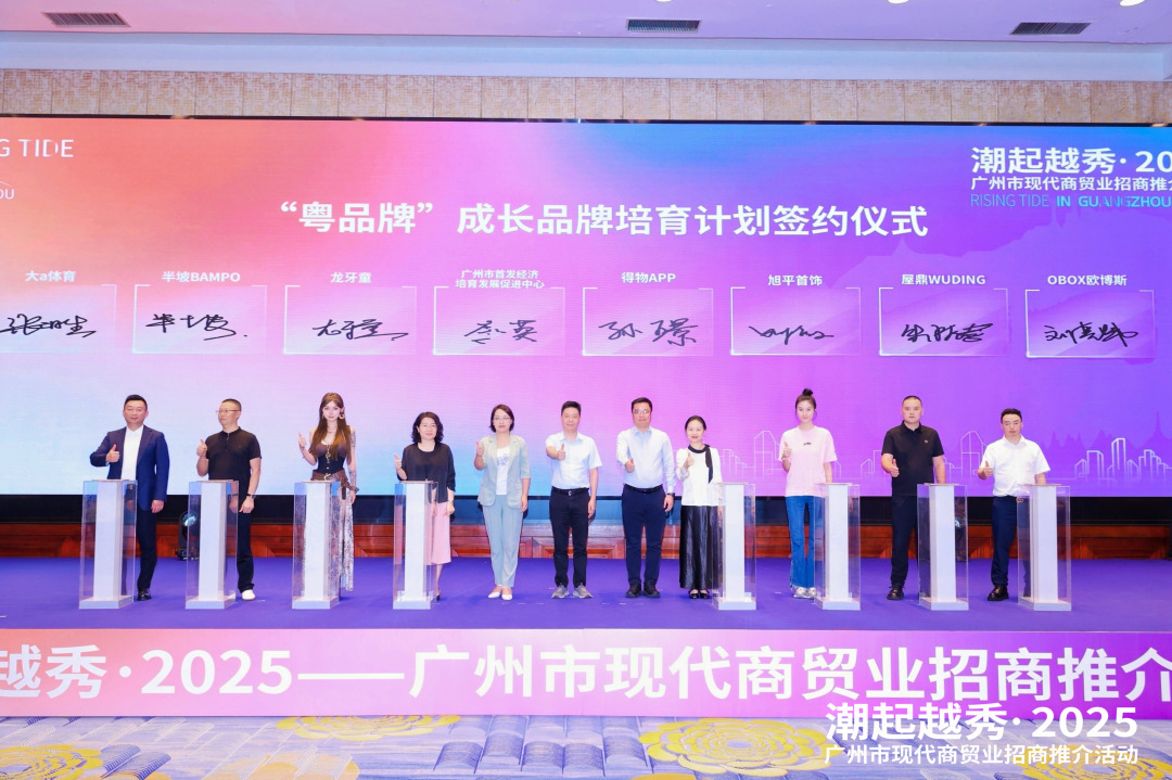 近年来,越来越多的高端商贸企业将广州作为战略布局的重点考量地区。华润万象城、太古里、K11等具备高端定位的商贸主体相继落户,为首店经济的发展以及高端消费需求的满足构建了优质的平台。广州首家市内免税店今年8月26日正式在广州友谊国金商店开业,全市离境退税商店数量已从2021年的76家攀升至目前的600余家。活动现场,广州市首发经济培育发展促进中心与得物APP、半坡、旭平首饰、屋鼎、大a体育、OBOX欧博斯、龙牙童达成战略合作,开展“粤品牌”成长品牌培育计划。