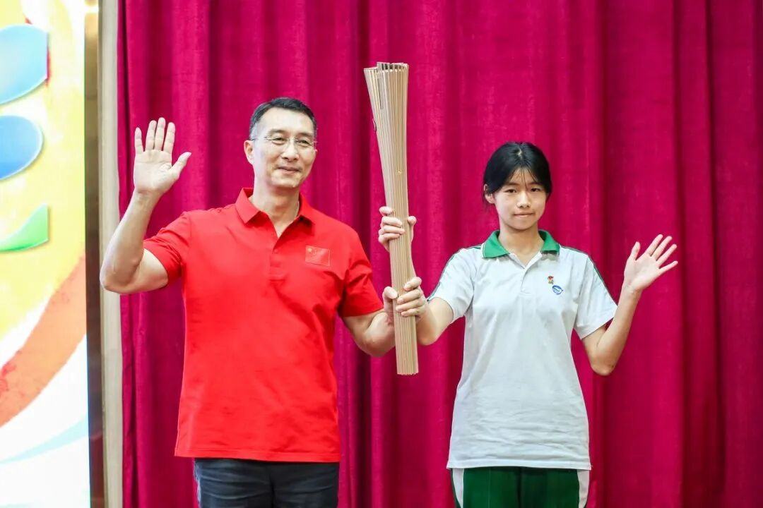 活动最引人注目的环节莫过于全校师生沉浸式体验火炬象征性传递的环节。十五运会和残特奥会广东省执委会火炬传递处特聘专家胡伟京受邀到现场介绍了火炬蕴含的设计巧思与体育精神,随后火炬接力正式开始。火炬手阵容涵盖了政府领导、教育主管部门负责人、九十七中教育集团总校长、各成员校学生代表以及优秀校友等,象征着体育精神在社会、教育、家庭与代际间的传承。火炬所到之处,师生们欢呼雀跃,掌声雷动。火炬象征性传递接力不仅将盛会的激情带进了九十七中校园,更点燃了每一位师生心中的运动梦想,将现场气氛推向高潮。