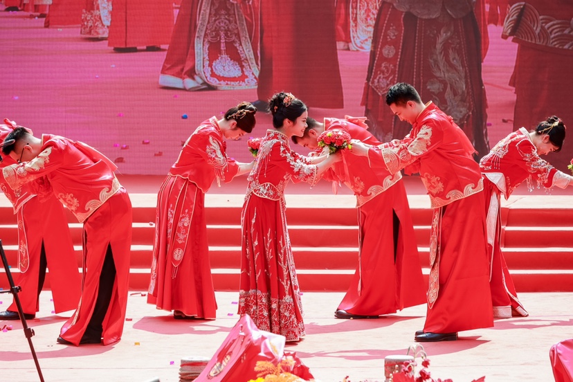 情深脉脉,细水长流。10对新人在此起彼伏的掌声、喝彩和祝福中,完成了跨火盆、三拜礼、敬茶礼等一系列喜庆浪漫的非遗婚俗仪式,让传统文化焕发出新的光彩,让家属和民众领略到淳朴热闹的疍家婚俗文化!