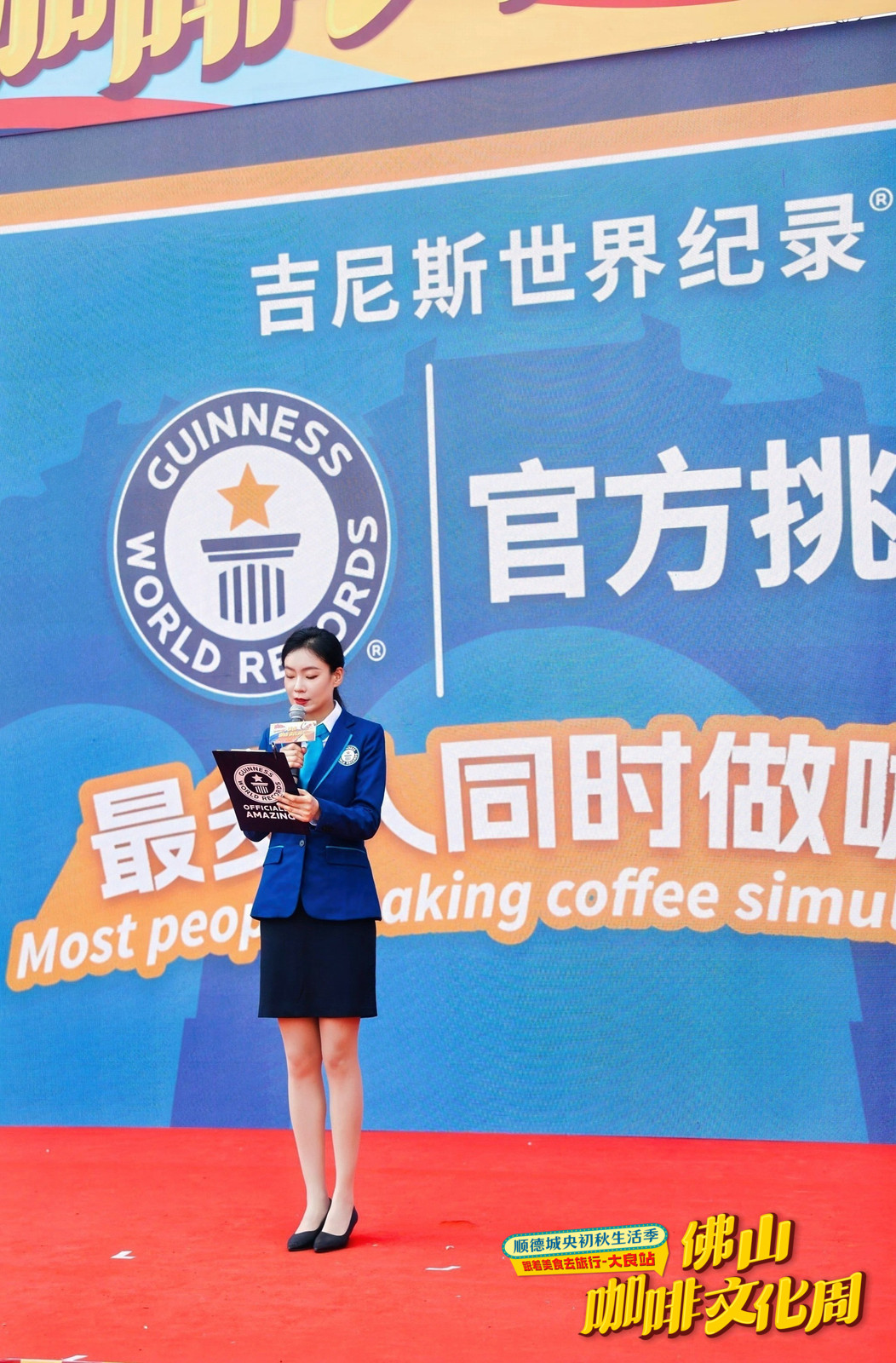 值得一提的是,一项新的吉尼斯世界纪录在这里诞生。在“亚洲第一牌坊”顺峰山牌坊下,今天,300名来自本土及各地的“咖啡主理人”、拉花冠军和非遗代表性传承人组成了“顺德”字样方阵,现场同时煮起咖啡。据悉,这成功打破了“最多人同时冲煮咖啡”吉尼斯世界纪录™,该项纪录不仅是一个突破,更是咖啡文化在当地普及成熟的体现。