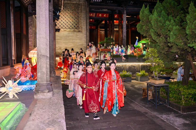 沙湾古镇融合发展“旅游+婚庆”项目,推动传承发展中华传统“囍”文化。国庆期间在沙湾古镇岭南囍事文化馆内现场展示番禺区级非遗代表性项目——广府婚礼习俗,如抛绣球、上头礼等。游客朋友们可现场参与体验,近距离了解广府传统婚俗。