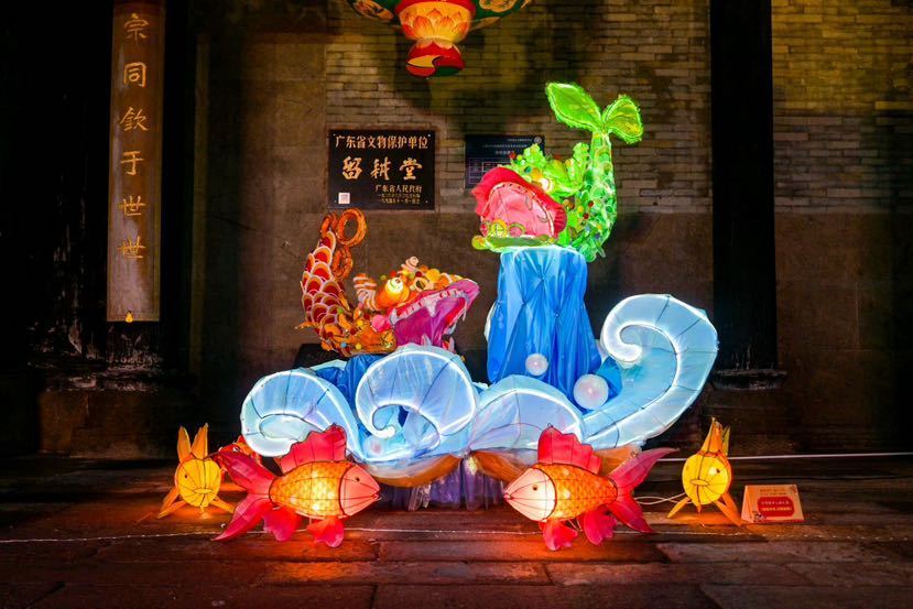 9月29日晚,2025年广州市番禺区沙湾鱼灯·非遗有戏文化节在沙湾古镇留耕堂广场正式亮灯启动。