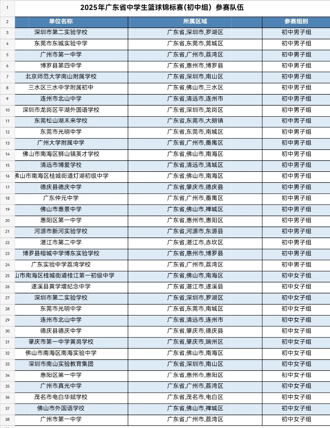 10月7日至14日,广东省初中篮球界的年度盛事,由广东省教育厅、广东省体育局主办的2025年广东省中学生篮球锦标赛(初中组)将在佛山火热开赛。全省36支校园篮球劲旅,近600名运动员将同台竞技,为广大篮球爱好者呈现一场青春盛宴。