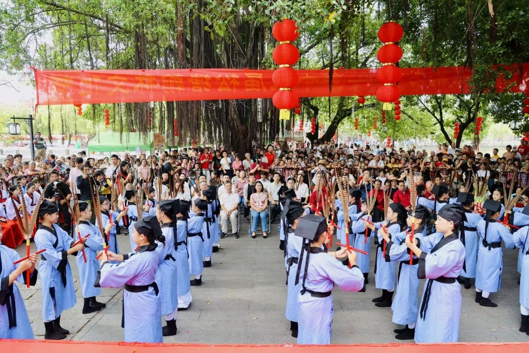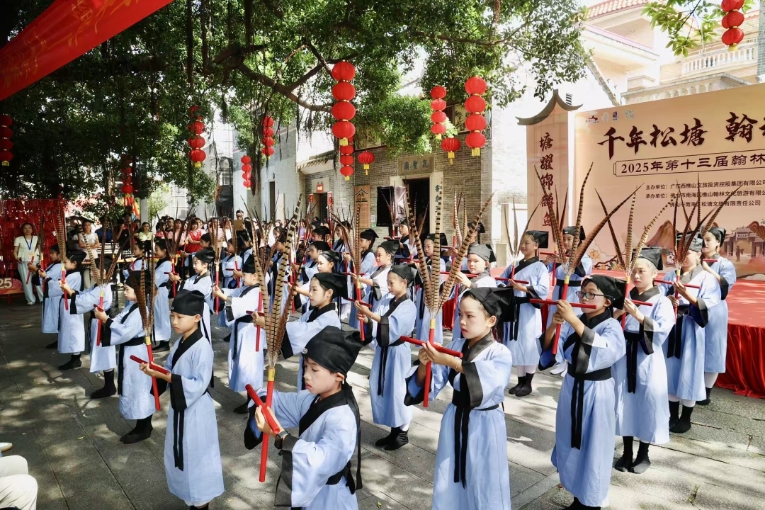 拜孔圣庙、登翰林门、步青云路、行月池运、品翰林宴……10月3日,西樵镇AAA景区松塘村的“千年松塘 翰林书乡”2025年第十三届翰林文化节迎来祭孔奖学仪式重头戏,吸引了众多游客与文化爱好者参与其中。据悉,第十三届翰林文化节从10月1日至6日在松塘村举办,活动期间还有古韵生辉市集、书画展、龙舟赛等。10月6日正值中秋佳节,松塘村烧番塔将如期进行。这座拥有800多年历史的古村,古韵与新潮交织,成为西樵镇文旅融合与乡村振兴的生动实践。