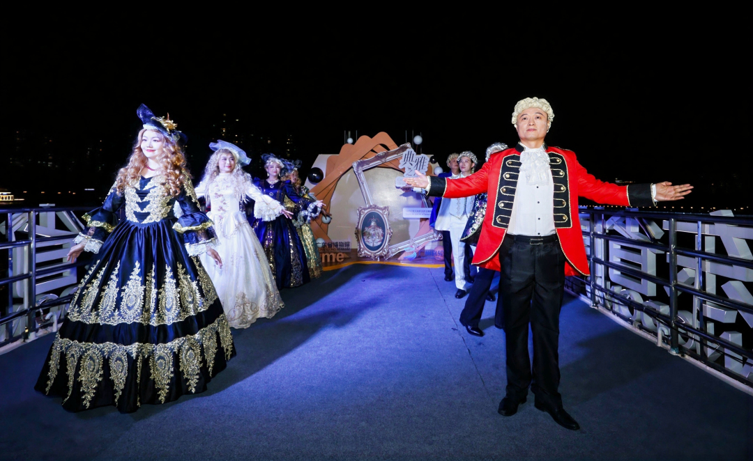 长假期间,由广东省博物馆与广州公交集团客轮有限公司联合打造的“粤博文化”主题游船正式推出“典雅之冠——意式‘水上宫殿’”文旅融合主题航班,将馆内正在举行的特展“典雅之冠:18世纪意大利萨沃伊王朝的宫廷生活与艺术”展的相关艺术体验延伸至珠江水面。观众在参观展览后登上游船,还可继续沉浸于萨沃伊王朝的华美氛围之中,完成从陆上到水上的完整文化旅程。船舱内,复刻艺术品与鎏金雕饰相映生辉,古典乐章轻柔流淌,营造出浓郁的意大利宫廷梦境;而窗外,珠江两岸现代霓虹闪烁,都市天际线与江水共映璀璨。古典优雅与现代繁华,在珠江夜色中隔江相望,展开一场无声的对话。主题航班以“意式风情之夜”派对形式启航。乘客不仅能够欣赏意式宫廷音乐的典雅韵律,还可选购特展艺术衍生品、品尝特色意式小食和粤博“松月秋实”月饼,开启一段融合艺术、历史与都市风情的水上奇旅。