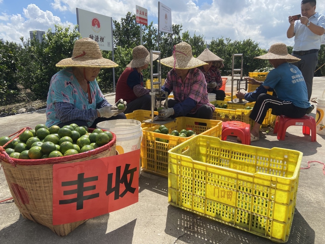又是新会柑采摘上市时!国庆节期间,在江门市新会梅江(产区)百盈柑场,当地的果农们正忙着摘柑、剥皮、晒皮,这标志着首批新会“微红”柑上市,来自珠三角等地的游客纷纷前来采摘。
