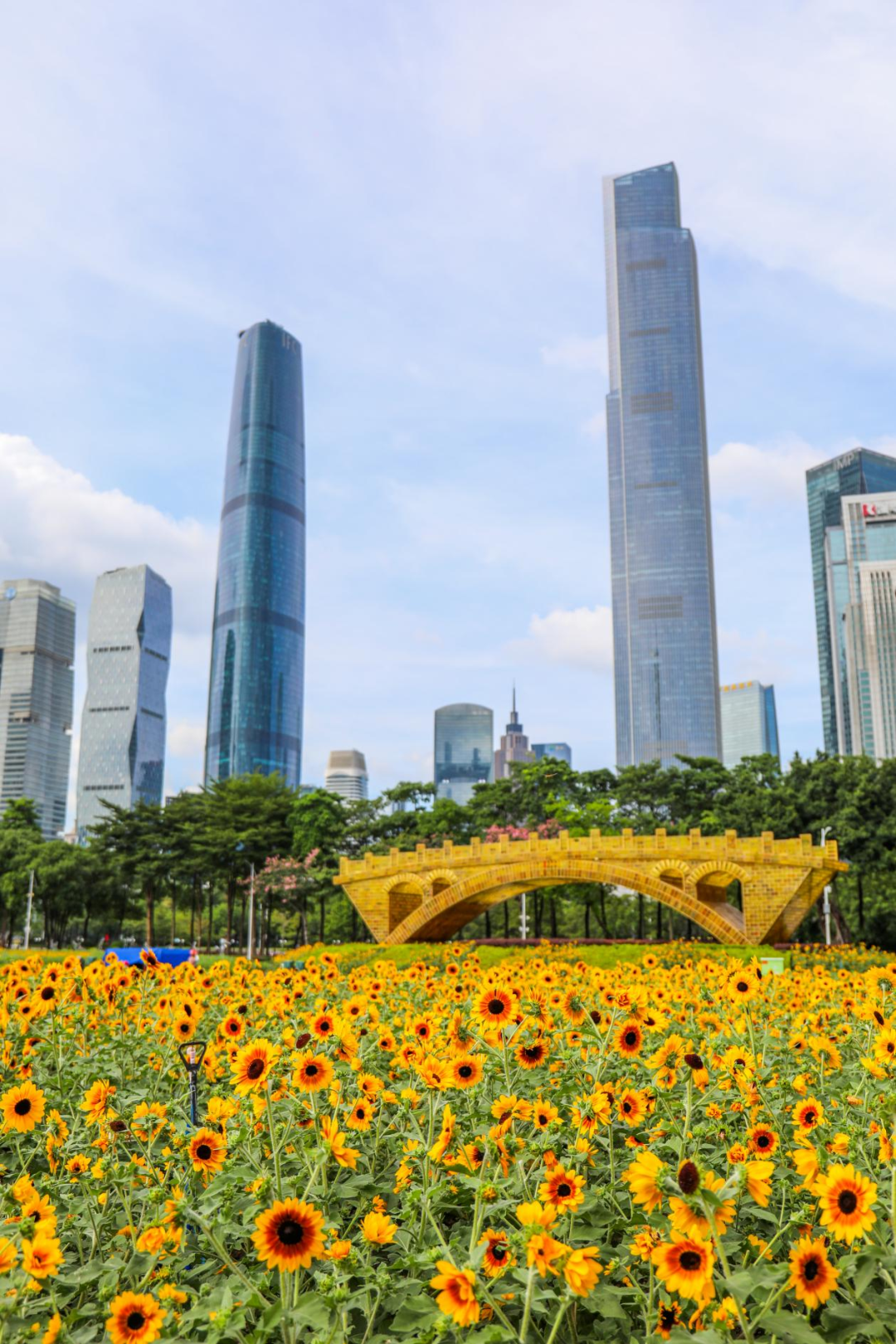 与此同时,花城广场-海心沙片区也换上节日盛装。海心沙二号桥“祝福祖国”主题花坛以千日红、龙船花、赤壁、红穗、黄穗、绿萝等数百盆花卉构成直径8米的圆形花境;音乐喷泉两侧焕新欢度国庆装置;花城广场党群服务站推出中秋灯笼手作体验,传承岭南传统文化。海心沙亚运公园向日葵花海正值绽放花期,花田与城市天际线交相辉映,是这个国庆假期最出片的网红打卡点之一。