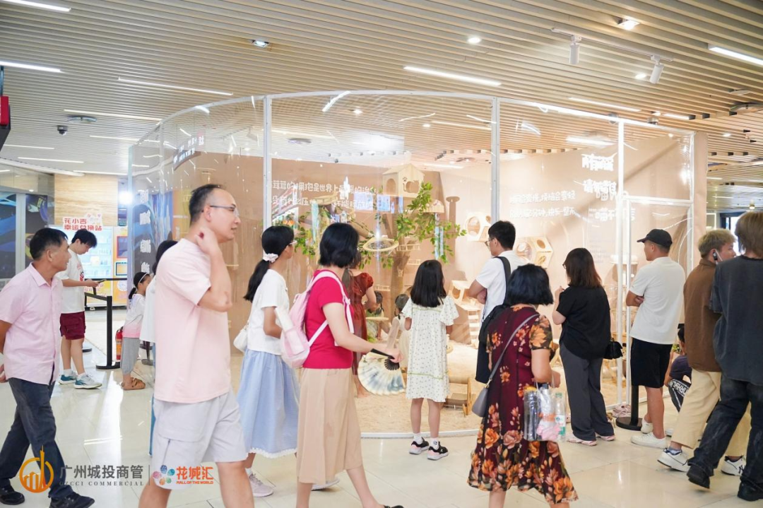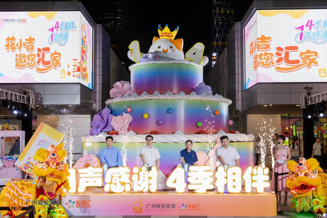 据悉,本届周年庆延续花城汇特有的庆典文化,在北区下沉广场精心打造高达6米的巨型蛋糕艺术装置,于9月28日晚举行亮灯仪式。装置融合花小吉IP与14周年元素,打造国庆中轴线最具仪式感的打卡新地标并推出限定主题DIY活动,包括萌宠族最爱的宠物毛毡工作坊、环保达人青睐的环保猫窝制作以及亲子家庭互动读书会,市民通过花城汇小程序预约参与,活动现场火热。
