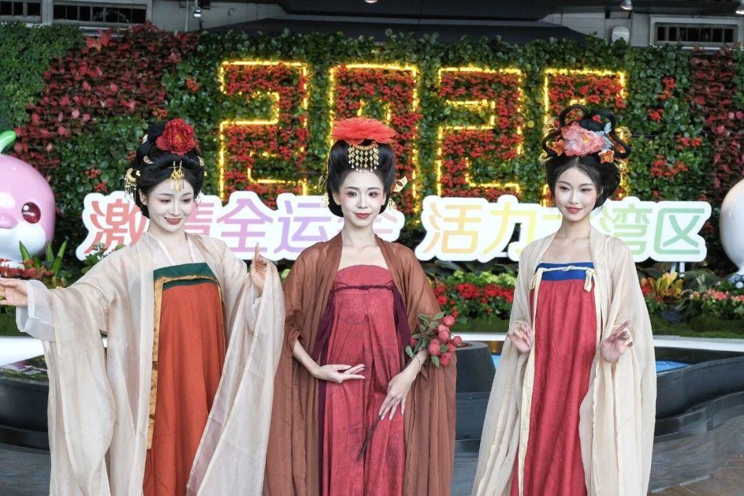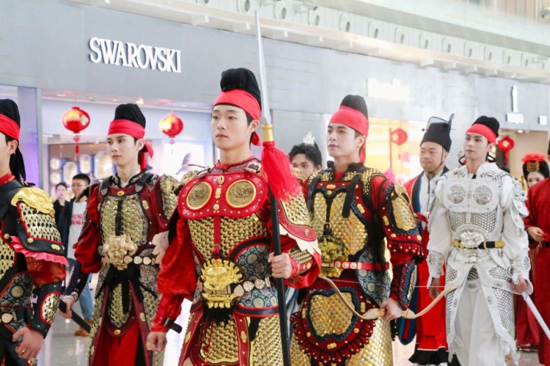 9时整,伴随着悠扬古典的乐声,唐风巡游缓缓拉开了序幕。12位身着精美唐制服饰的演员自出发厅款款而来,其中有身披威武甲胄、气宇轩昂的护卫队,亦有身着华美唐装、雍容典雅的岭南仙子。