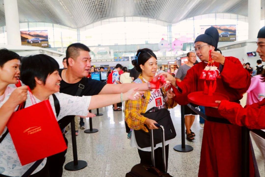 巡游过程中,他们在展现文化风采的同时,向旅客们派送中秋礼物及节日祝福。这份突如其来的节日惊喜,令旅客们喜出望外,纷纷举起手机,记录下这难得一见的场景。
