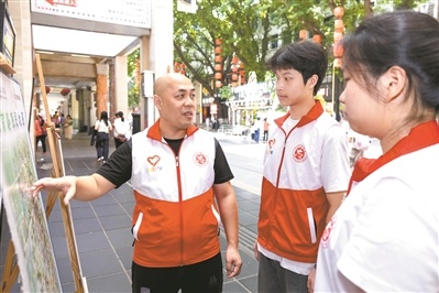 二十多年前,还是大学生的他便与同学组建志愿队,投身敬老助老服务。2010年,广州亚运会掀起全城志愿热潮,他辞去稳定的工作,全身心投入城市志愿服务,坚持至今。“城市导览、文化推介、环保宣教、安全倡导……这些都是城市志愿服务的一部分。”王志强说。自2020年起,他便扎根在北京路的志愿驿站,围绕街区提供便民服务,把温度落到小事里。