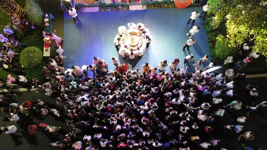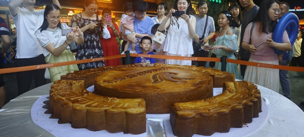 游客们排起长龙,在分享中完成“千人共一月”的当代团圆寓言。景区负责人透露:“特制模具就修改了三次,要让每块切口都保留完整的莲花浮雕。”当最后一块月饼被温情分食,篝火骤然点亮森林。