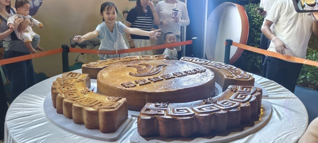 现场千名游客屏息凝视,广州游客李女士感叹:“第一次亲眼见到古籍记载的祭月礼,仿佛触摸到了华夏文明的体温。”随着编钟余音,六名工作人员抬出直径1.2米的黄金巨饼——由300斤原料特制的五仁莲蓉大月饼,如一轮小月亮降临人间。